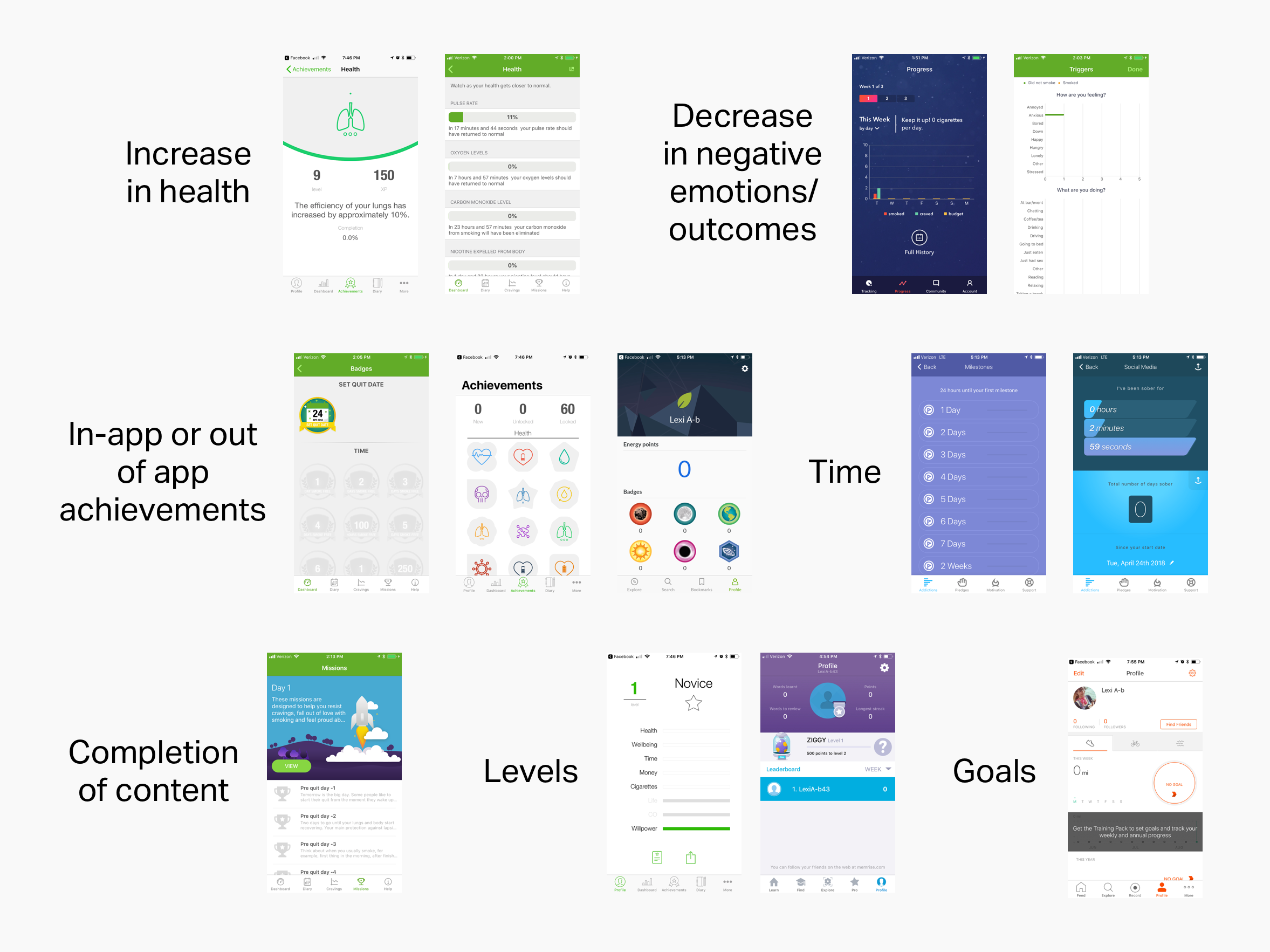 I had never designed a system solely focused on representing progress, so did extensive research to learn about progress in other behavior change and learning apps.