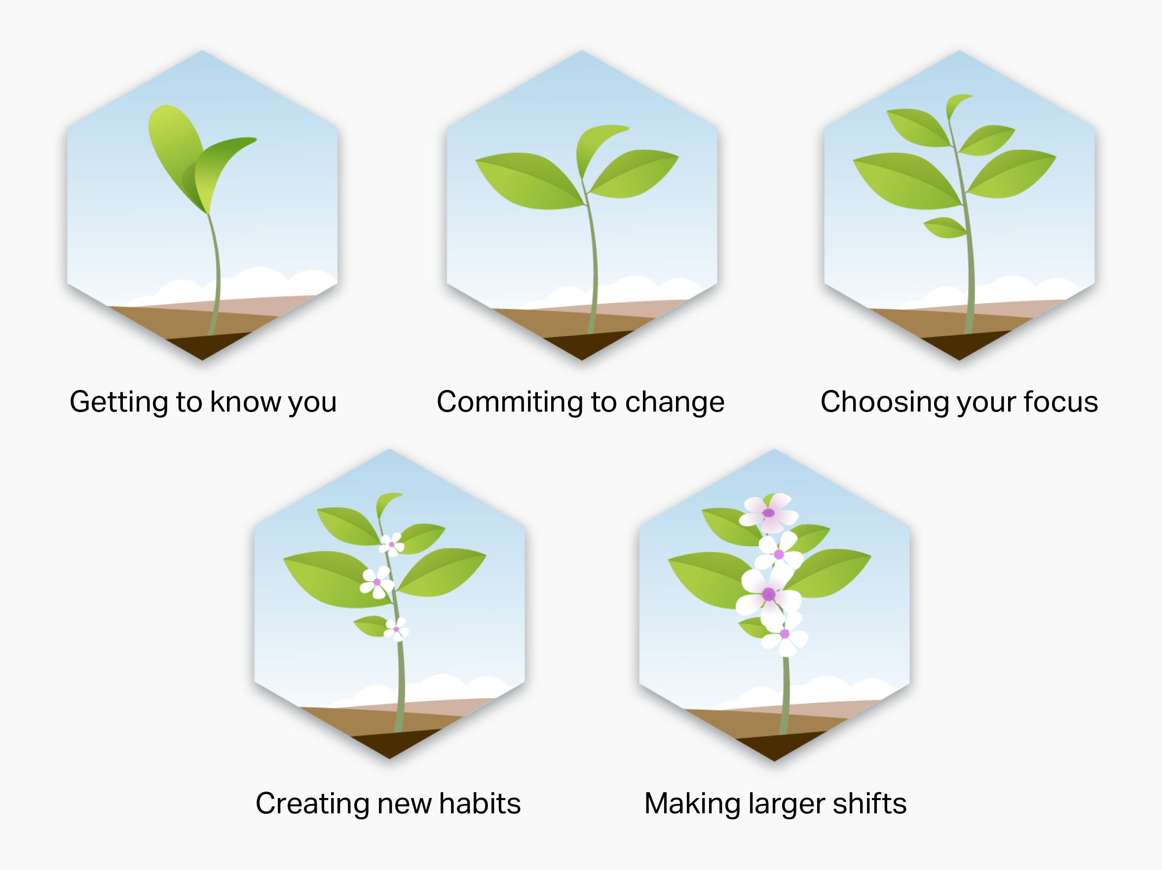The badge visual designs used a growth metaphor–as the user progressed through each level, they should feel like they were growing. Each icon corresponded with a level of progress.
