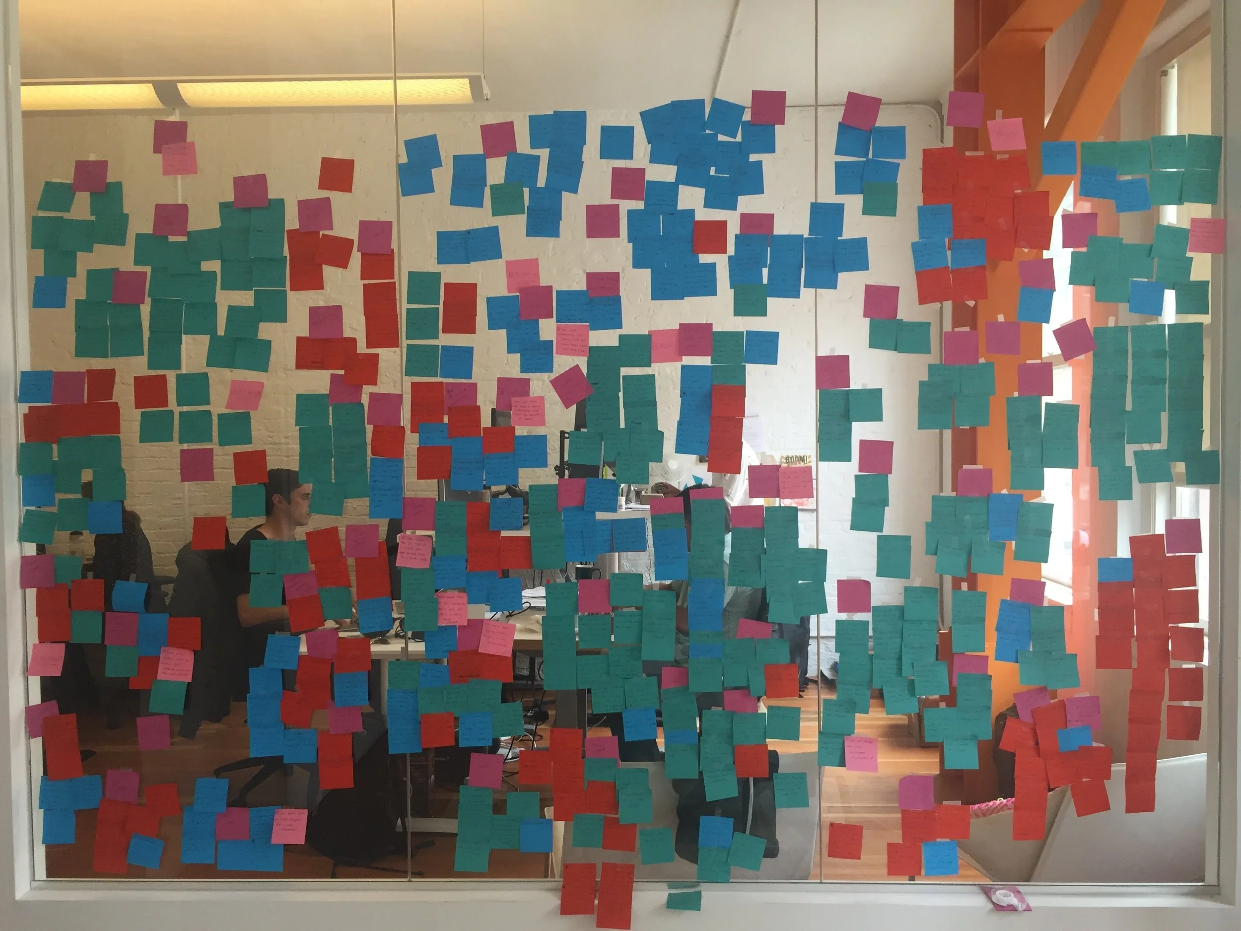 Interview analysis process. I’ve since learned (at a workshop at Cooper) that you should only ever write on Post Its with a Sharpie :)